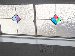 共用部の階段には、ステンドグラス仕様の窓ガラスを導入