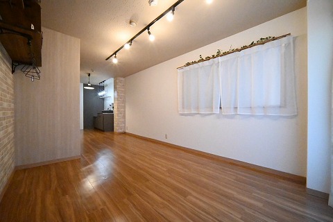 キッチン右側のスペースが冷蔵庫や電子レンジ台などの置き場となります。