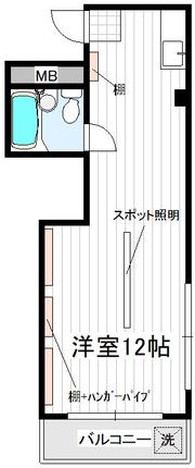 壁には便利な棚を設置、そして棚の下にはパイプハンガーを取り付けました。