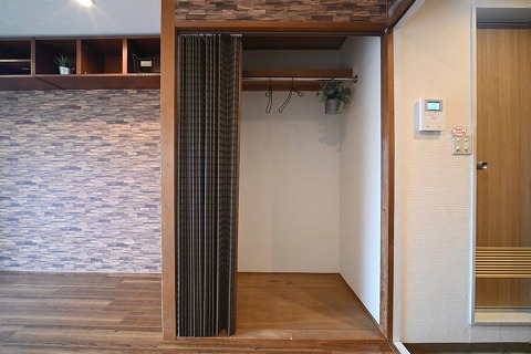 クローゼットに加えてウオールシェルフを壁面に取付けて収納を増やしました。