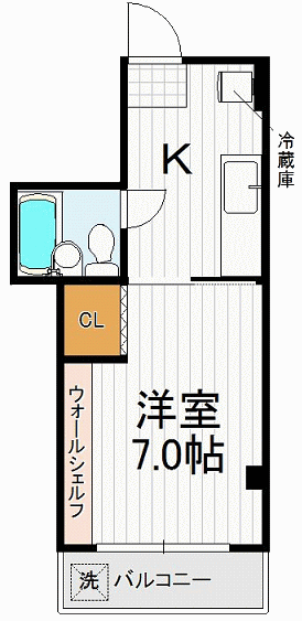 キッチン左側のスペースが冷蔵庫や電子レンジなどの置き場となります。
